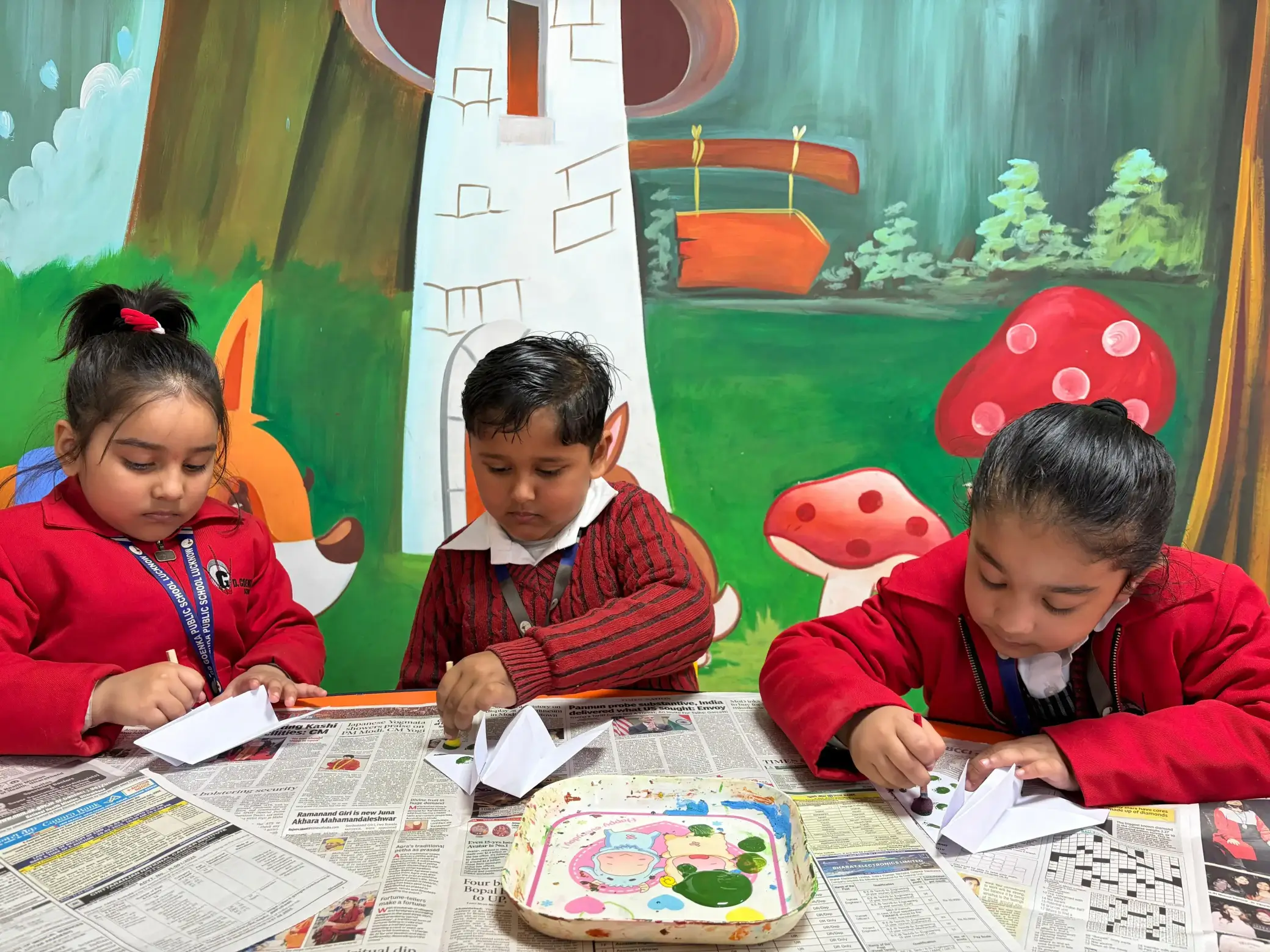 Students participated enthusiastically in a variety of well-planned activities. Toddlers created camouflage handprint “Thank You” hangings, Nursery students decorated paper soldier caps using finger painting, LKG students crafted fighter aeroplanes with paper and cotton dabbing, UKG students made soldier crafts using ice-cream sticks, Grade I students designed vibrant Army Day posters, and Grade II students completed worksheets featuring soldier colouring and a military-themed word search.