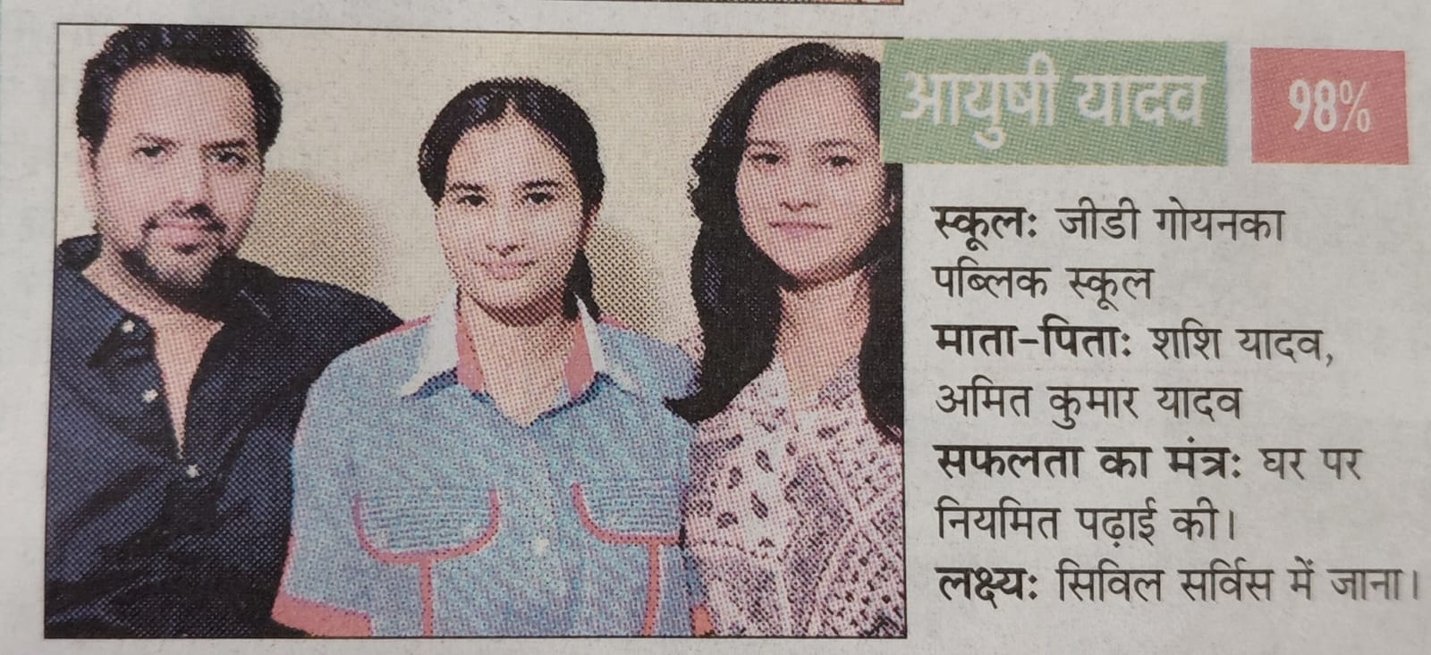 Leading the achievers, Alisha Kaushik secured an impressive 98.4%, including a perfect score in English, setting a benchmark of excellence. Close behind, Aryan Singh and Avneesh Pal scored 98.2%, while Aayushi Yadav achieved 98%, reflecting consistent academic dedication among students.